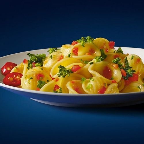 Orecchiette – Durum száraztészta. Nettó tömeg: 500g. Összetevők: durumliszt, víz. Nyomokban tojást tartalmazhat. Száraz, fénytől védett helyen tárolandó. Főzési útmutató: helyezze a tésztát forrásban levő sós vízbe (1 liter víz / 100g tészta), és főzés közben alkalmanként kevergesse. A javasolt főzési idő 12 perc, ezután a tésztát szűrje le és hagyja állni pár percet. Átlagos tápérték adatok 100g termékre: Energia: 1521 KJ/ 359 kcal, zsírok: 2,0g, amelyből telített zsírsavak: 0,5g. Szénhidrátok: 71,2g, amelyből cukrok: 3,5g. Rost: 3,0g, fehérje: 12,5g, só: 0,013g. Minőségét megőrzi a csomagoláson jelzett időpontig (nap/hó/év). Származási hely: Olaszország.